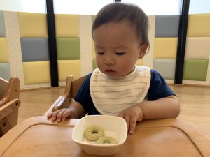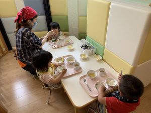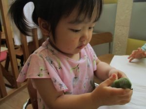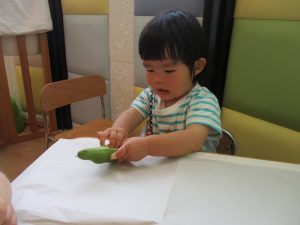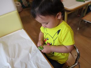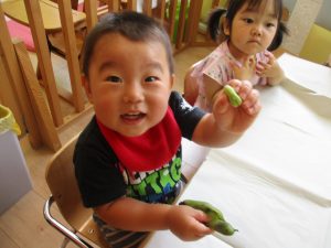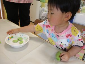 みんなでそら豆向きにチャレンジした1・2歳児さんたち
