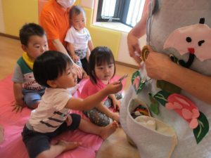 楽しい手遊びとエプロンシアターの後は…