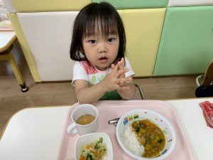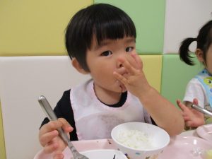 国府宮園では、調理員さんたちが心を込めて作ってくれたお給食をほぼ完食の子どもたちです?