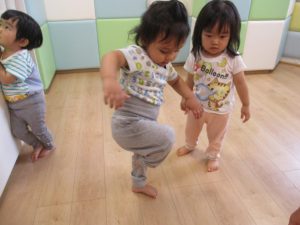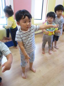 戸外でたくさん身体を動かす機会が少ないためいつも以上に室内ではしっかり動ける活動をたくさん行いました。