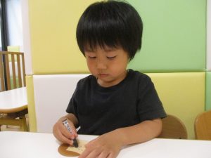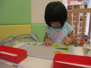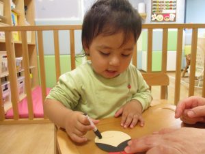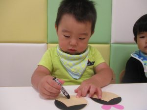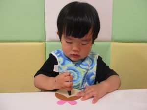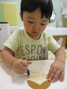 ?織姫と彦星の顔を作っていた1.2歳児さんたち