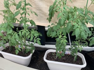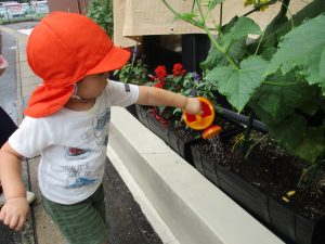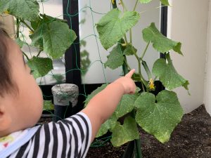 小さなきゅうり?や緑色のトマト?を見ながら収穫を楽しみにしました❗