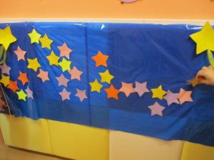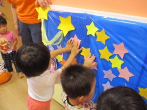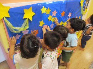保育室中に貼られた⭐を見つけて天の川を作りました?
