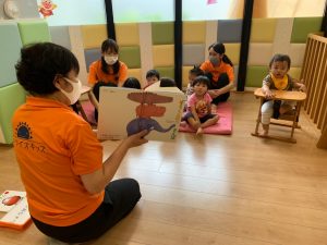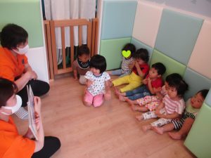 みんなで揃っての読み聞かせは、年齢や月齢ごとの反応が面白く、お友だちの反応をみてのリアクションにも日々成長を感じることができます?