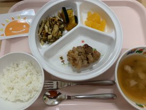 ※子どもたちは、切り昆布の煮物を見て「これな~に?」と言いながらたくさん食べていました!昆布は、カルシウムが多く含まれていている食材と言われています。