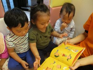 遅番保育での読み聞かせのひと時です![]()