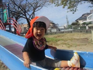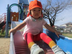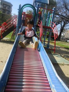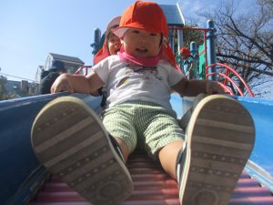 大好きな滑り台は一番人気![]()