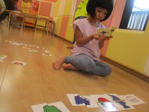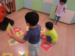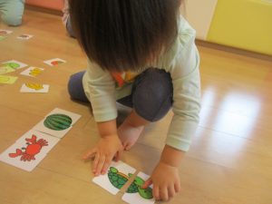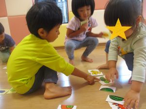 野菜のカードを使ってのカードとりゲームを楽しんだ2歳児さんたち??