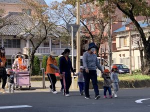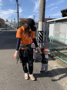 1.2歳児さんたちは、かなり長い距離を手を繋いで歩けるようになりました!