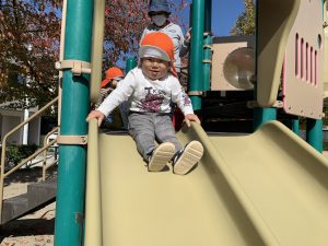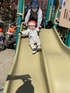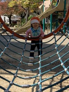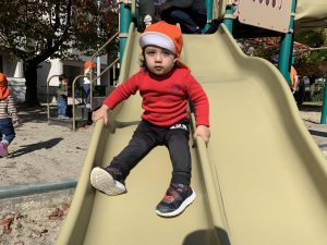 とご機嫌で1番乗りで滑り台を楽しむ1歳児さん❤