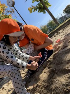 お砂場玩具を共有することでコミュニケーション能力が身に付きます![]()