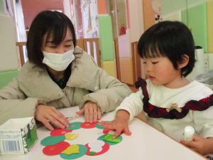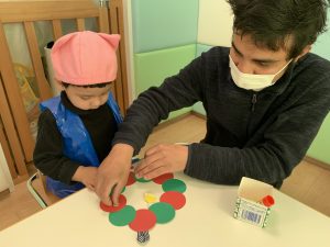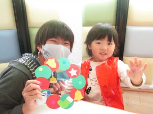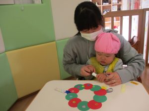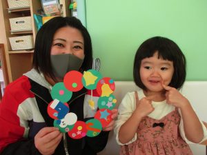 大好きなお母さんやお父さんと一緒にクリスマスリースを作りましたよ?