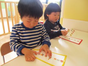 日々、保育活動の中で指先を使った遊びや日常の生活の中で意識して指先を使うことで自然と身についていきます。
