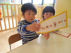 今週は2歳児さんたちのお正月遊びをご紹介させていただきます!