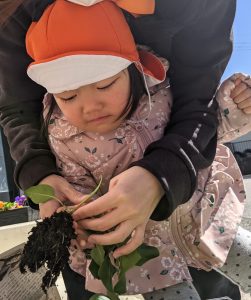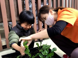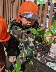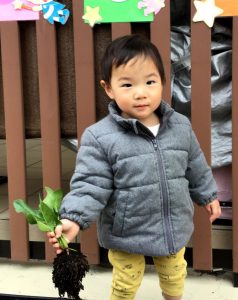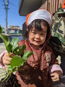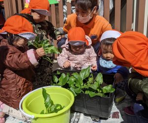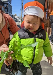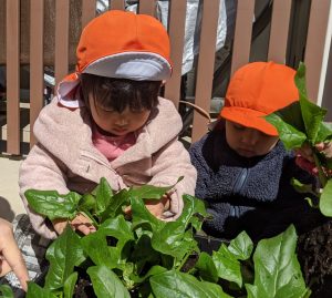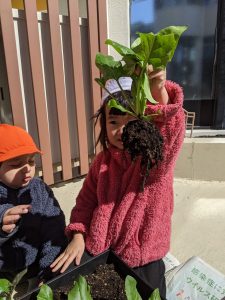国府宮園で育てていたほんれんそうが子どもたちの水やりの甲斐もあって