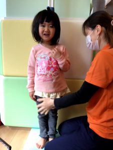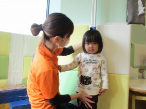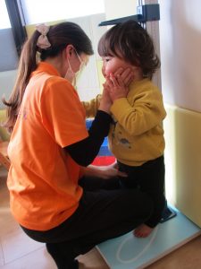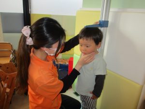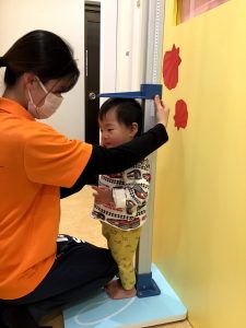 当初は泣いていた0歳児さんは、自分から測りに来てくれるなど