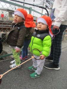 久しぶりの駅へのお散歩に大興奮の子どもたち?