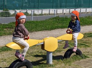 友だちを誘い合ってシーソーをしたり、遊具に乗ったり…