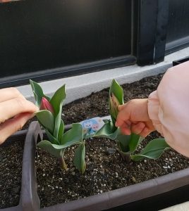 今週やっとチューリップの蕾が膨らみ始め、子どもたちと戸外に出掛ける時はその成長を見るようにしています。?