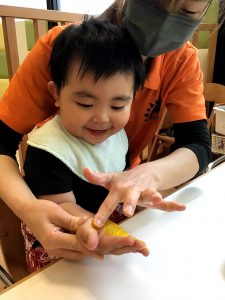 この可愛い手型が何になるかはお楽しみ…?