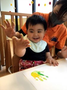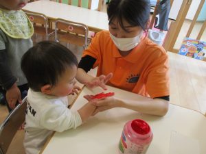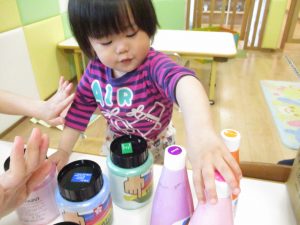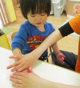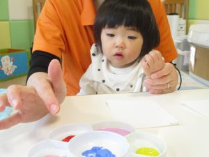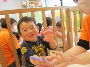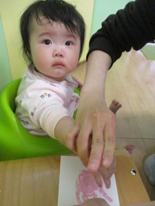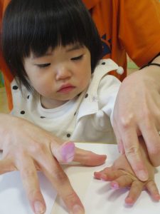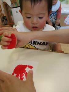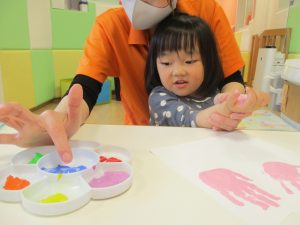 絵の具を手のひらに塗ってぺったん!?