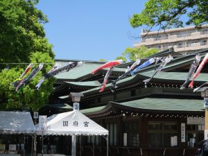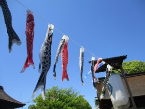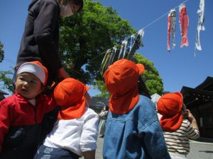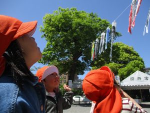 頭上に広がるこいのぼりに圧倒されてじっと見つめたり、