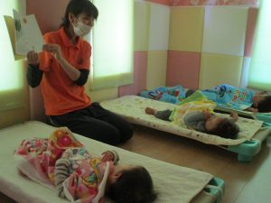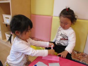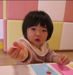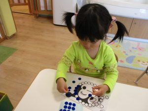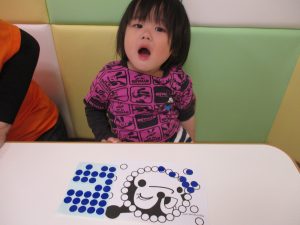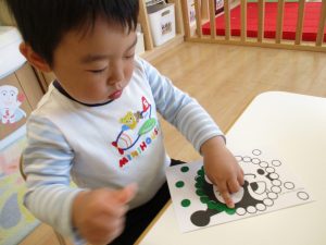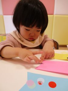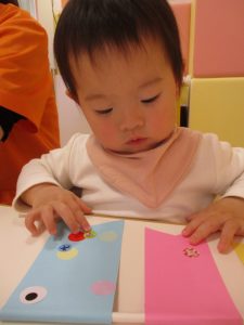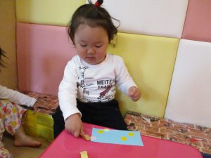 ?2歳児さんは少し難しいシール貼りに挑戦!