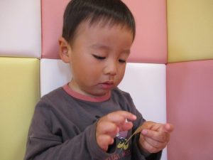 上手く剥がすことが出来ず、手伝って欲しいと目で訴える子も…?(笑)