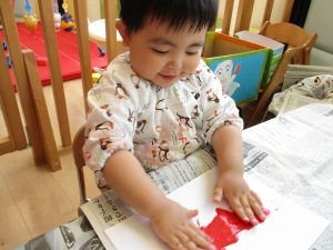 絵の具でフィンガーペイントをしたり。