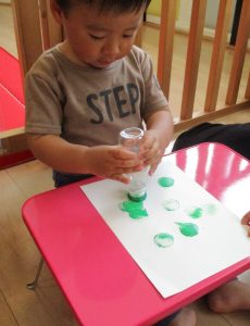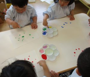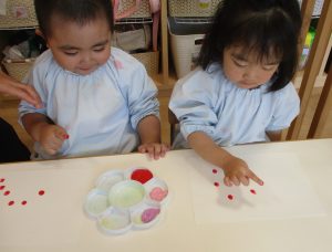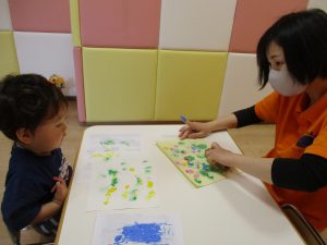 たんぽやスポンジを付けたスタンプ、ダンボールなどを使ってポンポンっ?