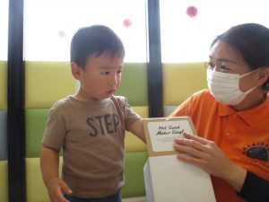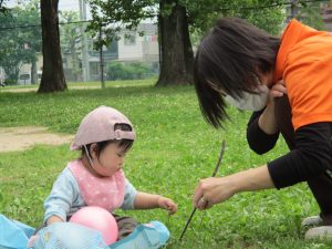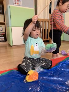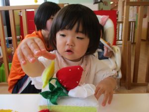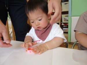 0歳児さんも少し触ってみることができました