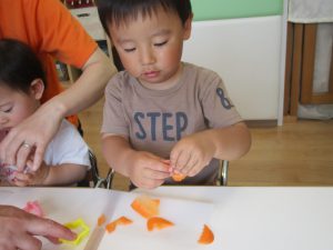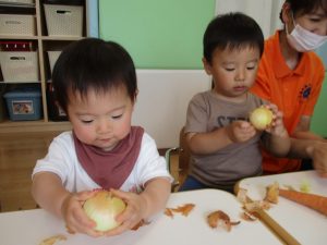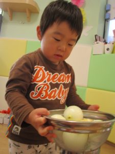 玉ねぎの皮むき?や人参の型抜き?チャレンジは大成功❣