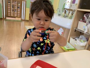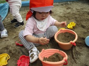 指先を使って摘んだり掴んだりすることは運動野を刺激し脳を活性化させますが、同時に物を触って感覚を育てることも大切です。
