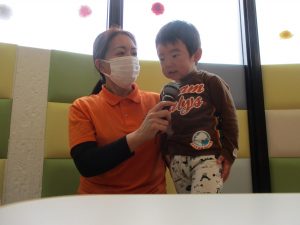 大好きなお友だちや保育者に囲まれて少し照れながら質問に答えてくれましたよ!