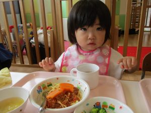 「おいしいよー」と2歳児さん