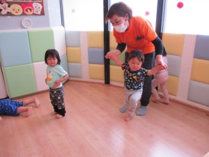 オープン時に4ヶ月から来てくれている彼女が歩いたときはみんなで大歓声!
