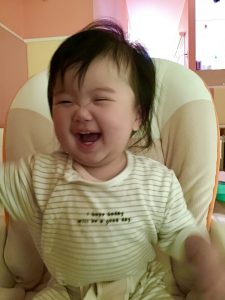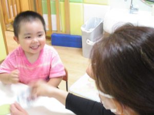 もう1人の1歳児さんは、大きい口を先生に見せることができましたよ。