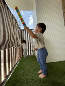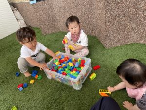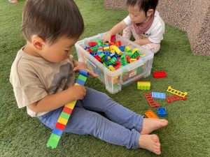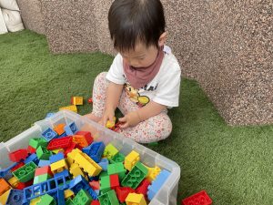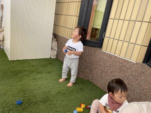 外の風を感じながらのレゴブロック遊びは開放感もありとっても気持ちよく、