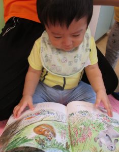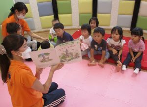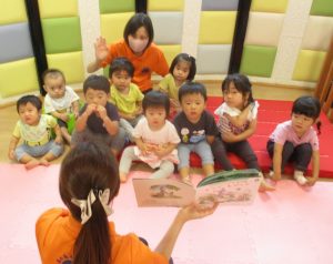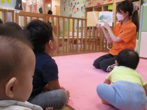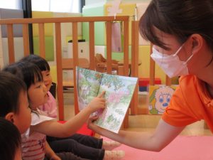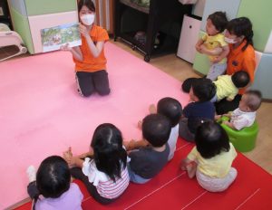 1歳児さんだけでなく、みんなで一緒に読む機会も多いのでその様子をお伝えさせていただきます?