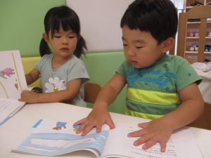 早速絵本に触れて楽しんでいましたよ。