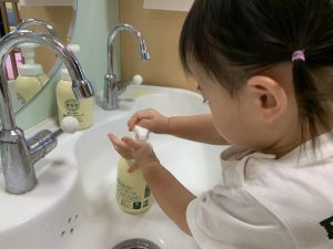 園の子どもたちは、登園したら手洗い消毒がいつものルーティーン✨