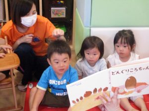 ふわっとした絵と、ころちゃんの歌に子どもたちも釘付け?