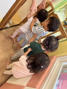 最近は、遊びの途中でも教えてくれる2歳児さんたち