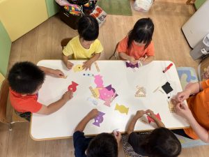 秋にちなんだものをたくさん探しているサンライズキッズたちです