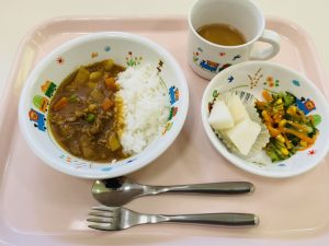 ※1歳児クラスの子どもたちは、「自分で食べたい」という心が芽生え、こぼしたり、ひっくり返したりしながらも自分で頑張って食べています♪