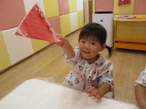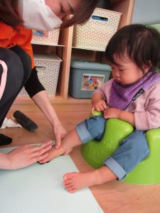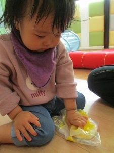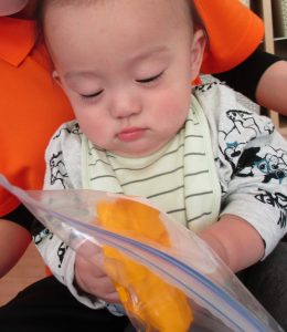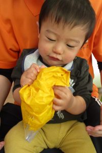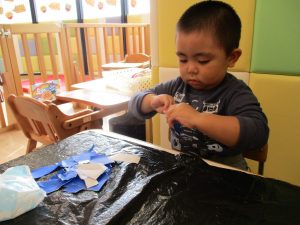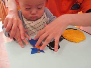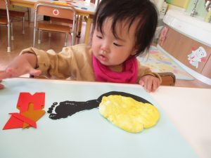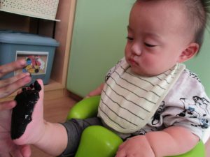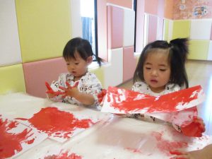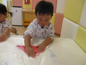 1歳児さんは絵の具を使った感触遊びに挑戦!✨