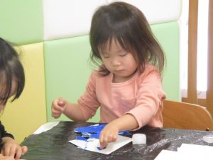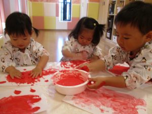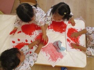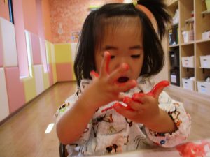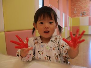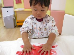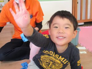 すぐに慣れて積極的に絵の具を手に付ける姿が!?