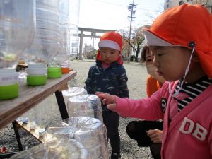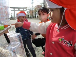 「ペットボトルで出来てるんだ~!」とじっくり観察する子が多かったですよ~?