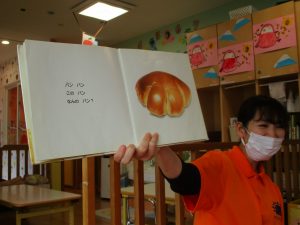 最後はそれぞれが好きなパンを聞いていくと、嬉しそうに自分の好きなパンのページをめくって教えてくれました!もも組さんも指差してくれましたよ?