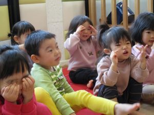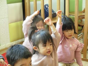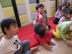 だ~る~ま~さ~ん~の~、で体を揺らすのも楽しいねー!!?